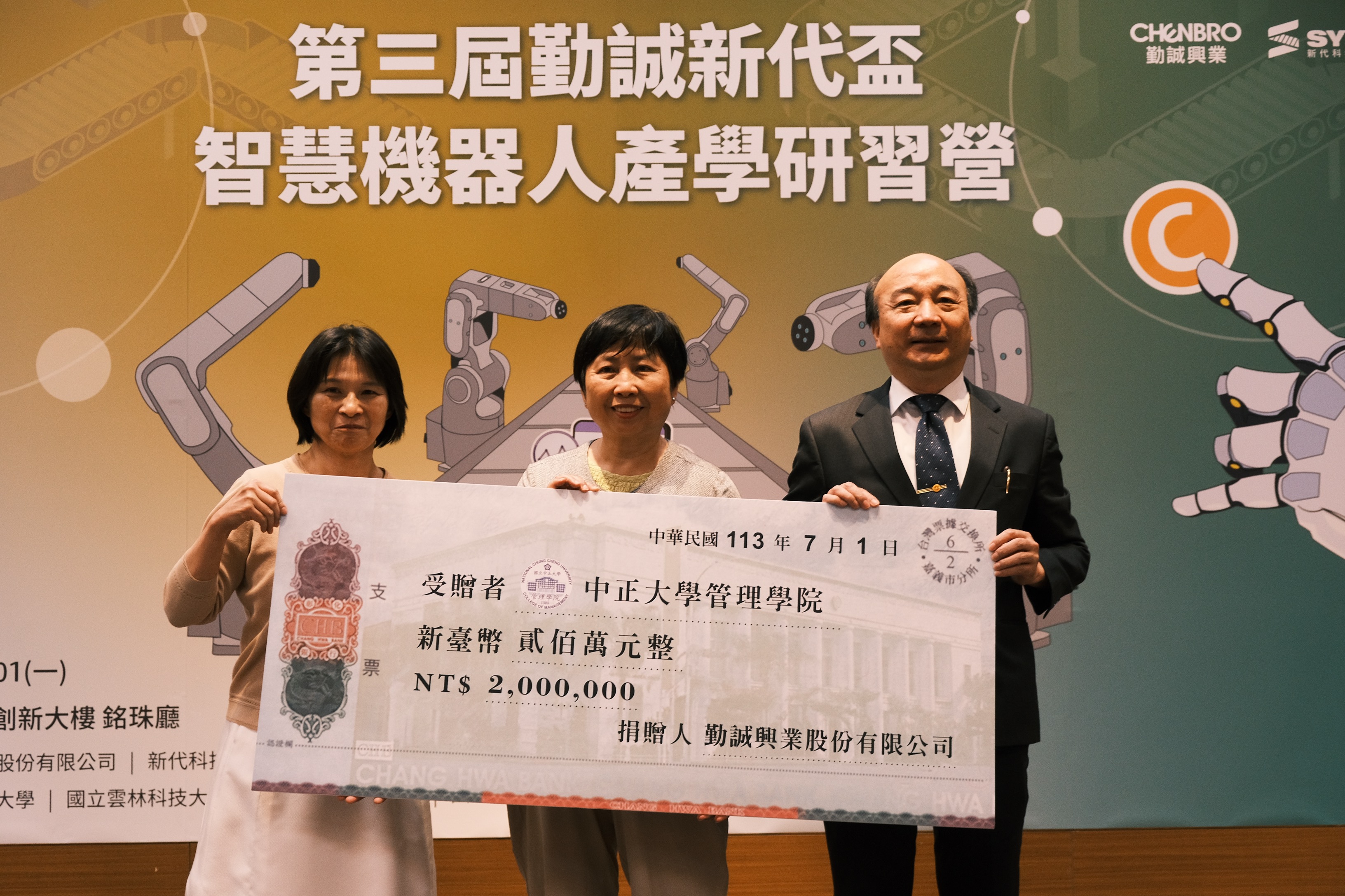 伺服器机壳领导厂商勤诚兴业(证交所代号:8210)与控制器大厂新代科技(证交所代号:7750)及子公司联达智能今(1)日举办第三届智慧机器人产学研习营开幕式,同时也举行中正大学「勤诚讲堂」捐款仪式,由勤诚赞助捐赠管理学院演讲厅修缮费用新台币两百万元。开幕式现场热闹非凡,研习营的师生们热情与会,嘉义县县长翁章梁及云林县副县长谢淑亚今日亦亲自出席、共襄盛举,肯定勤诚及新代对云嘉地区人才的培育,更给予年轻学子鼓励与肯定。